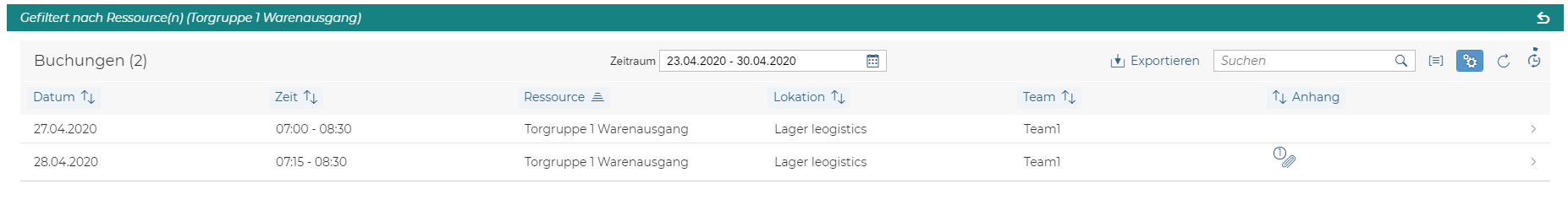 Natürlich sind diese Informationen auch in Listenform verfügbar – so können Sie auf einen Blick sehen, zu welchen Zeitfenstern noch keine Dokumente hochgeladen wurden und Ihre Geschäftspartner auf diesen Umstand hinweisen.