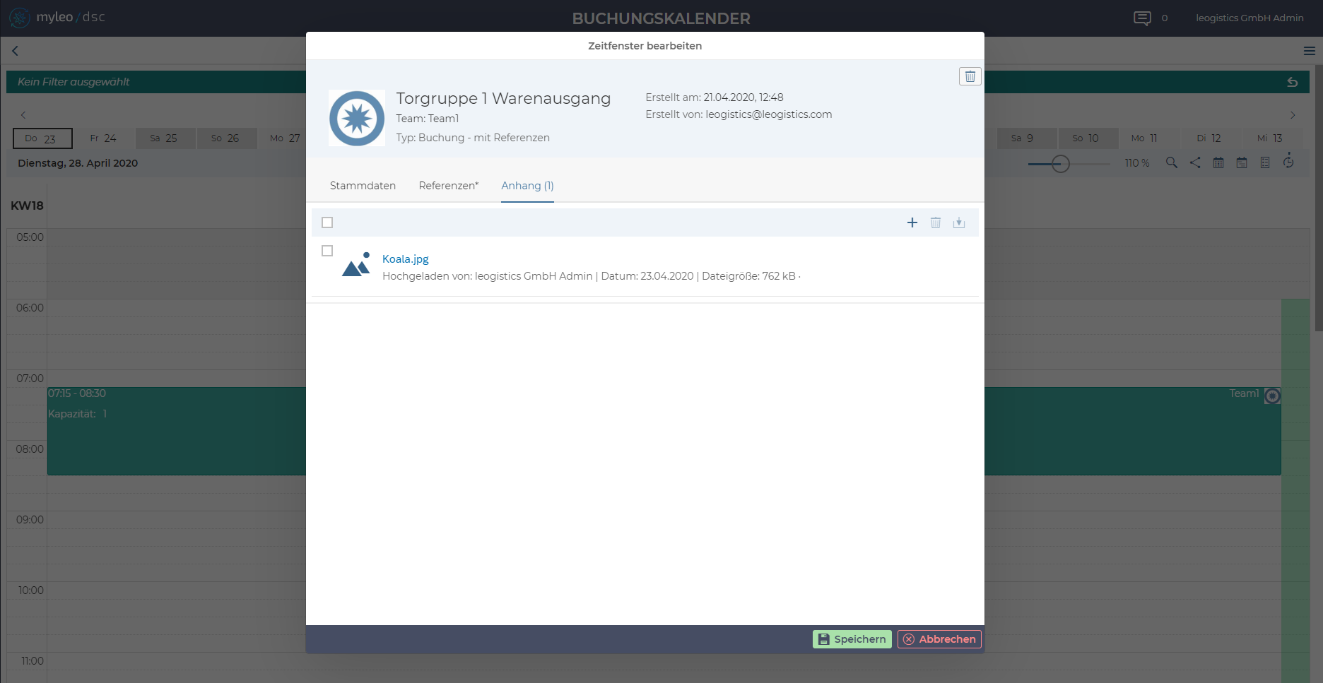 Selbstverständlich ist es auch möglich, die Dokumente nach erfolgter Zeitfensterbuchung hoch- bzw. herunterzuladen. So können Sie nicht nur Informationen vom Transportdienstleister einsammeln, sondern diesem auch Informationen zukommen lassen.